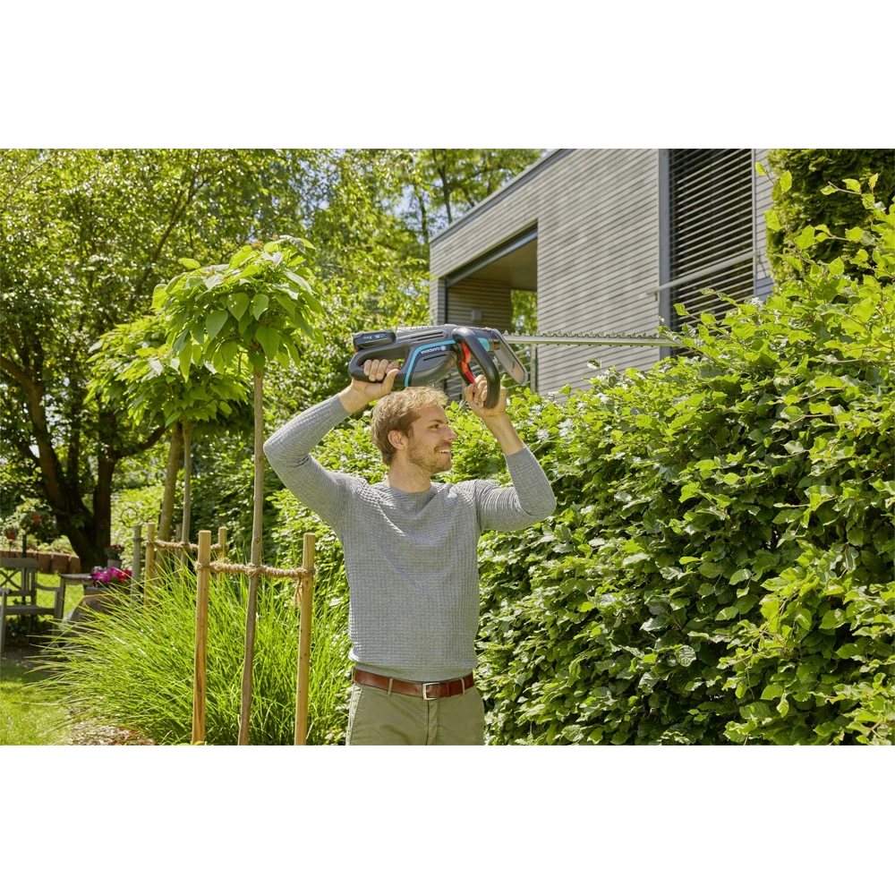 Snoerloos, handig, licht en gebruiksvriendelijk: met de GARDENA accu-heggenschaar ComfortCut 60 / 18V P4A snoeit u middelgrote heggen zonder al te veel moeite.Dankzij een duidelijk zichtbare LED-indicator direct op het gereedschap bent u altijd op de hoogte van het huidige laadniveau, zodat je weet wanneer het tijd is om een pauze te nemen om het op te laden of om een andere accu aan te sluiten. De heggenschaar is compatibel met alle accu’s van de 18V POWER FOR ALL ALLIANCE. Afhankelijk van het type accu dat wordt gebruikt, kan het product een accuduur van maximaal 135 minuten bereiken en tot 450 vierkante meter heg snoeien.Met zijn ErgoLine-handgreep met geïntegreerde schakelaar ligt de schaar met een bladlengte van 60 centimeter altijd comfortabel in de hand, in welke positie u ook werkt. het mesje zorgt ervoor dat de mesjes niet beschadigd raken. De bladgeometrie is perfect ontworpen zodat de snede altijd zuiver is en het werk gemakkelijk uit te voeren is – zonder onderbrekingen. We weten dat u onder de indruk zult zijn van de resultaten! Met de ComfortCut is het snoeien van heggen niet langer een vermoeiend, inspannend karwei, maar een dat in een mum van tijd kan worden gedaan.De GARDENA Accu-heggenschaar ComfortCut 60 / 18V P4A solo wordt geleverd zonder accu en oplader. Hij is compatibel met alle 18V-accu’s van de POWER FOR ALL ALLIANCE, een van de grootste accu-allianties van meerdere merken van toonaangevende fabrikanten. Deze accu’s kunnen worden gebruikt voor tal van apparaten in huis en tuin. U bespaart dus geld en blijft flexibel! Passion powered by GARDENA – Tuingereedschap op accu dat u de vrijheid geeft om te creëren.
