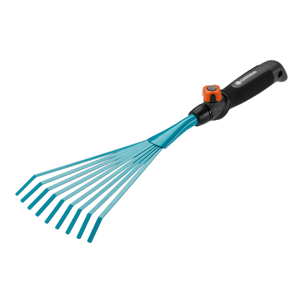 Het GARDENA combisystem bladharkje is ideaal om bladeren, onkruid en gemaaid gras op te ruimen. De ergonomisch gevormde handgreep met zachte componenten ligt prettig in de hand. Koppel een combisystem steel om comfortabel langdurig op de grond te werken. Het bladharkje heeft een breedte van 12 cm en is vervaardigd uit hoogwaardig staal met een Duroplast coating.