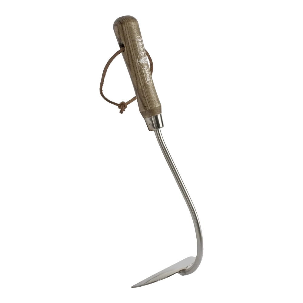 Het hoogwaardige FSC-hout ligt prettig in de hand. Wel zo handig, want soms is er kracht nodig om ongewenste planten weg te hakken of te snijden. Het sterke roestvrijstalen mes is scherp, zodat jij makkelijk hakt, schraapt en snijdt. Na het werken in de tuin, berg je het handhakje eenvoudig op door het leren koordje als hanger te gebruiken.