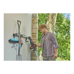 Met de Gereedschaphouder Plus van GARDENA bespaar je ruimte bij het opbergen van je tuingereedschap. De houder is ideaal voor het opbergen van zwaarder tuingereedschap, zoals spades en vorken, maar ook voor de producten uit het GARDENA combisystem en andere grotere gereedschappen. De houder is van aluminium gemaakt en imponeert met zijn belastbaar gewicht van 60 kg. Op de drie houders kun je gereedschappen met een gewicht tot 10 kg per stuk opbergen. De houders zijn flexibel en kunnen ook worden gebruikt om accessoires uit het combisystem en het Original GARDENA System op te bergen. De universele haak kan worden gebruikt voor het opbergen van grotere gereedschappen, zoals heggenscharen of bladblazers met hun brede handgreep. Deze haak kan maximaal 5 kg dragen. Dankzij de vergrendelbare muurbevestiging kun je de aluminium stang uittrekken zodat er nog meer gereedschap aan de houder kan worden opgehangen. De Gereedschaphouder Plus krijgt van GARDENA 25 jaar garantie na registratie binnen 3 maanden na aankoop op GARDENA.com/registration.