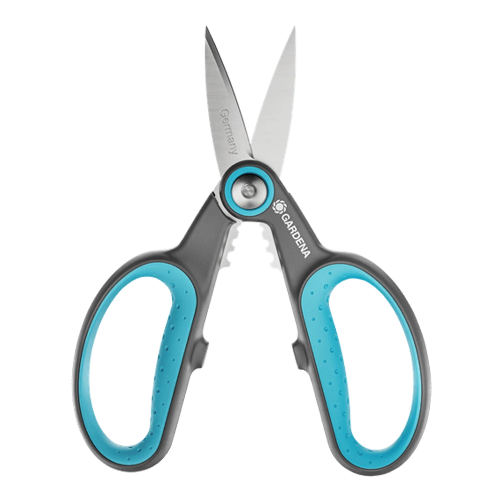 Met de HerbCut van GARDENA kan je op betrouwbare wijze houtachtige kruiden zoals rozemarijn, tijm of salie knippen. In de praktische set met holster heb je de HerbCut onmiddellijk bij de hand. Met de puntige messen, gemaakt van duurzaam en roestvrij staal, kan je langdurig precies knippen. Tussen de twee handgrepen zitten gaatjes met drie verschillende groottes. Deze hebben een praktische ontbladerende functie. Als je bijvoorbeeld een rozemarijntakje erdoorheen trekt, verwijder je alle bladeren met een enkele beweging. Je kan vervolgens de kruiden gebruiken om er direct mee te koken, of ze eerst laten drogen. De kruidenschaar is geschikt voor zowel rechts- als linkshandigen en past altijd comfortabel in je hand, dankzij de ergonomische ErgoTec-handgreep. De antislip handgreep met zachte grip zorgt voor een stevige grip op elk moment. De HerbCut is indrukwekkend duurzaam, aangezien zijn handgrepen en holster zijn gemaakt van meer dan 70% gerecyclede kunststof. Om de schaar op zijn plek te houden, hoef je hem alleen maar in de holster te plaatsen, die je bevestigt aan de kruidenpot. De messen zijn is geschikt voor contact met voedsel, want deze voedselveilige schaar laat geen geur of smaak achter. Hij is ook gemakkelijk schoon te maken en is vaatwasmachinebestendig. De HerbCut is een kwaliteitsproduct dat is ontwikkeld in Duitsland en GARDENA geeft er 25 jaar fabrieksgarantie op na registratie op gardena.com/registration binnen 3 maanden na aankoop. Ga voorzichtig om met het product. GARDENA Micro-Cutting. Geef je oogst de respect die het verdient, met ons assortiment precisiegereedschappen.