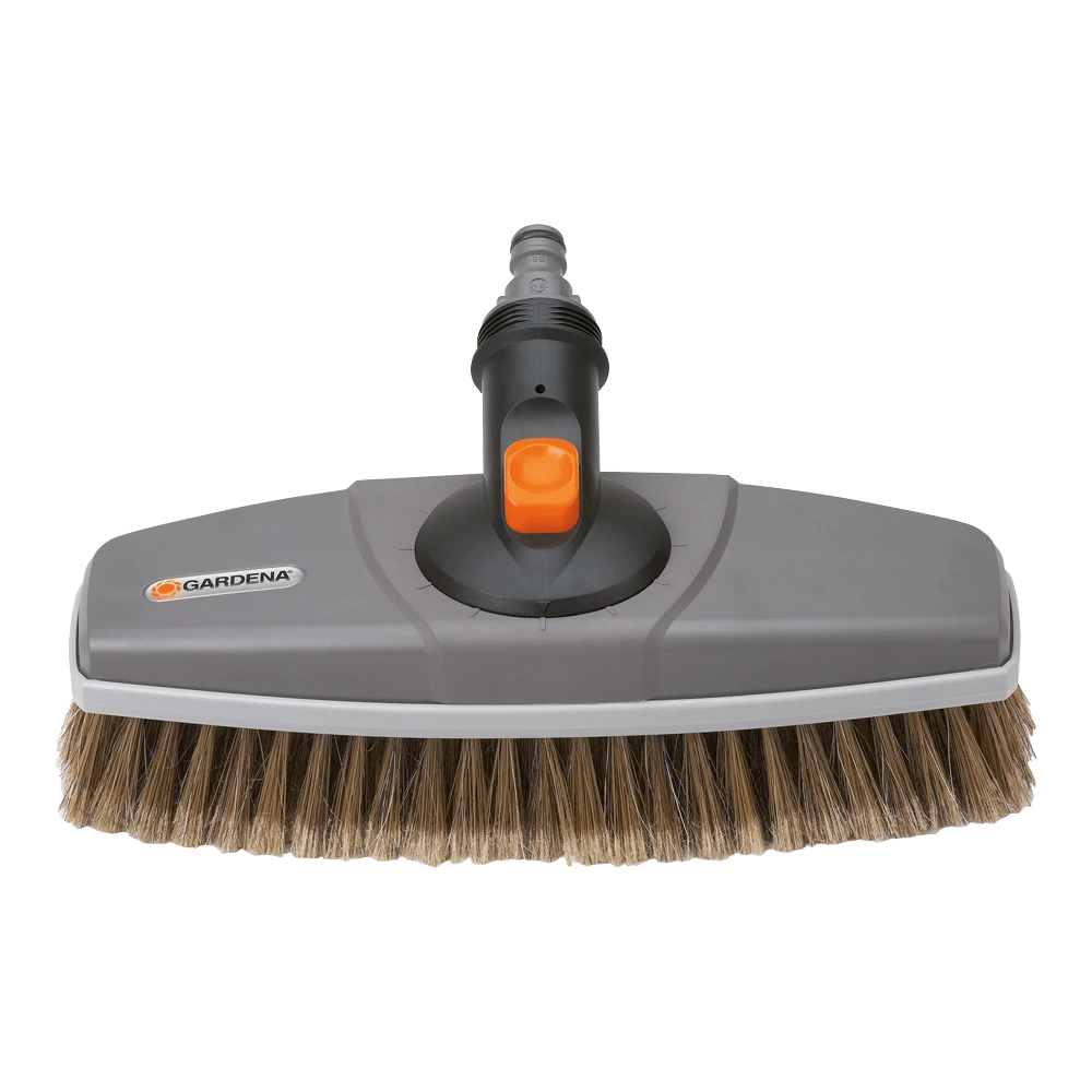 Met de GARDENA wasborstel wordt schoonmaken leuk. De wasborstel kan op het waterleidingnet worden aangesloten met de Original GARDENA System-aansluiting en heeft PET kwaliteitsharen. U kunt kwetsbare oppervlakken, zoals auto’s of caravans, voorzichtig en effectief reinigen. Sluit één van de Original GARDENA Cleansystem waterstelen aan met het aansluitstuk op de wasborstel. De wasborstel kan volledig op het draaistuk in stappen van 30° worden gedraaid en kan moeiteloos worden aangepast aan het oppervlak dat moet worden schoongemaakt. De werkbreedte is 27 cm.